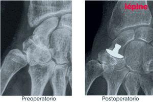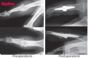 Las siguientes imágenes muestran casos clínicos reales que ilustran la evolución del paciente antes y después del tratamiento con implantes ortopédicos de mano.
